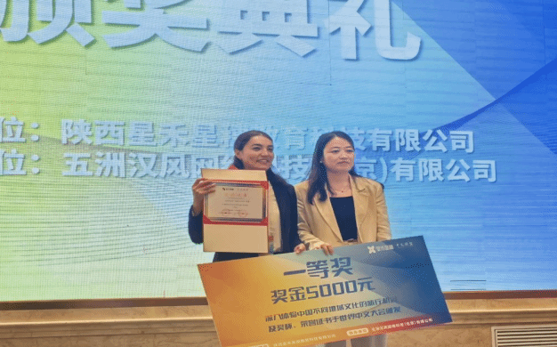 2025年11月2日,由陕西星禾星穗教育科技有限公司主办、中文联盟(五洲汉风网络科技有限公司)协办的首届国际双语人才中英文演讲比赛全国决赛在陕西省西安市举办。我院土库曼斯坦的国际学生阿曼(AMANOVA OGULJEMAL)经过线上初赛、省级复赛层层选拔,在百余名选手中脱颖而出,并以一等奖的好成绩晋级决赛,最终在全国决赛中荣获一等奖佳绩。