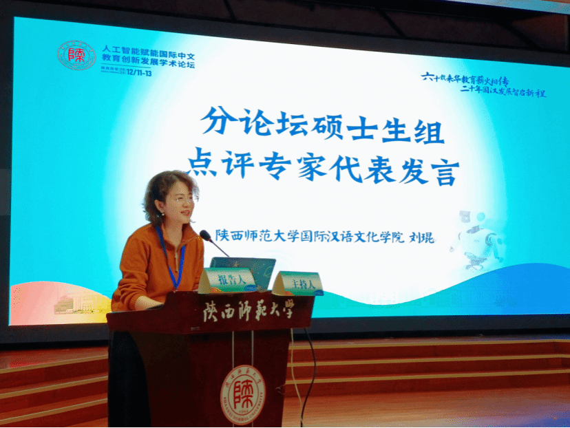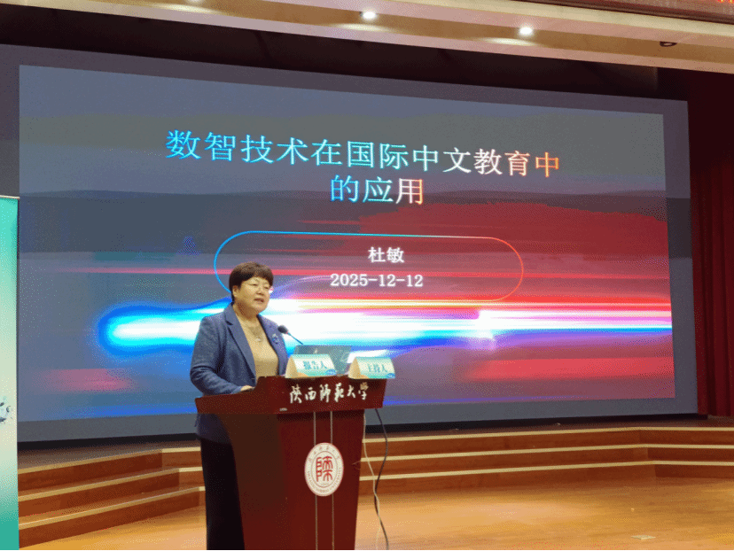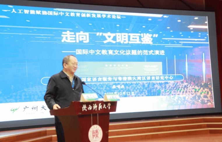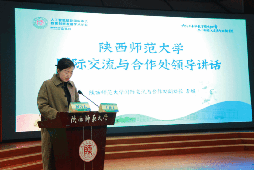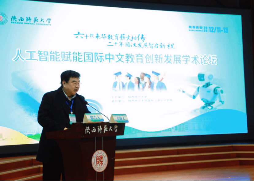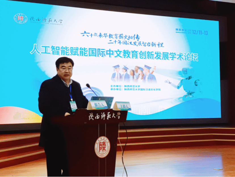 “人工智能赋能国际中文教育创新发展学术论坛”于2025年12月12日在陕西师范大学雁塔校区成功举办。此次学术论坛由陕西师范大学主办、陕西师范大学国际汉语文化学院承办,来自华东师范大学、武汉大学、西安交通大学、中央民族大学、北京语言大学、浙江师范大学、广州大学等64所高校及科研机构的专家学者和师生200余人参与此次论坛。大会围绕AI在国际中文教育中的应用实践与挑战、师资发展与人才培养、教材创新与资源共享、智能评估与伦理规范等关键议题展开研讨。