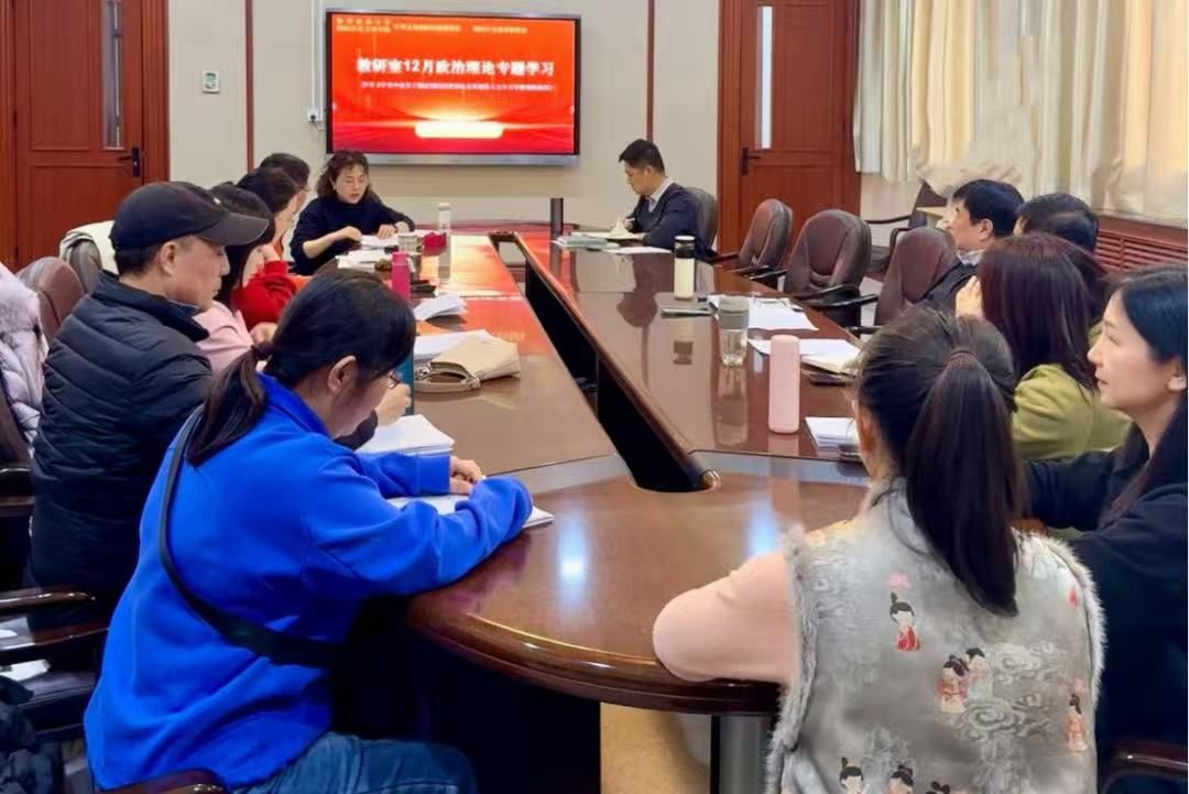 2025年12月24日下午,国际汉语文化学院国际中文教育教研室与中华文化国际传播教研室联合举办12月政治理论学习活动。活动聚焦《中共中央关于制定国民经济和社会发展第十五个五年规划的建议》及相关说明开展集中学习,全体教师深入领会规划中教育强国、文化传播、高水平对外开放等核心部署,重点围绕国际中文教育如何对接国家战略、融入学院发展、赋能个人成长展开学习交流。
