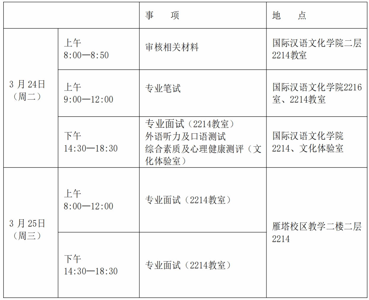 2026年国际汉语文化学院研究生复试时间为3月24日(周二)—3月25日(周三),详细安排如下: