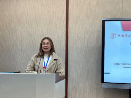 国际汉语文化学院教师代表李锦副教授在发言中强调了中泰两国地缘相近、文化相亲的友好关系,鼓励同学们走出课堂,在西安的每一处古迹、每一段历史中感受汉语的魅力。
