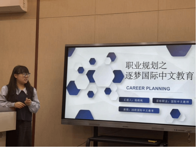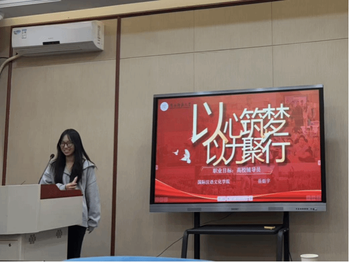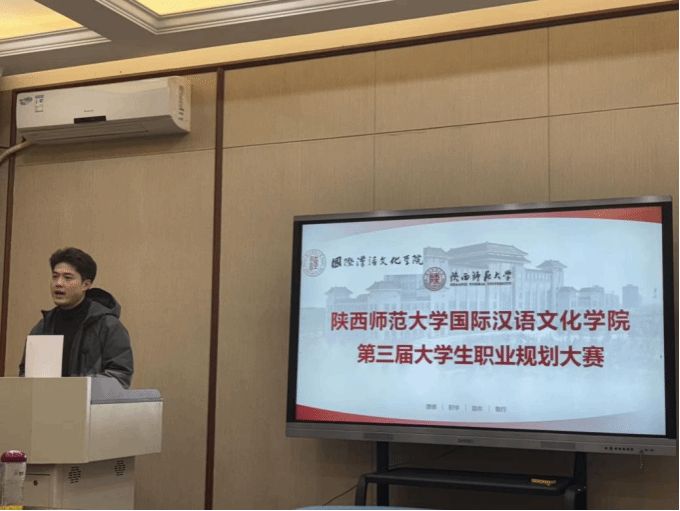 为提升学生职业生涯规划意识与就业竞争力,2025年11月26日下午,国际汉语文化学院在教学二楼一层报告厅举办第三届大学生职业规划大赛。本次大赛特邀学院团委书记翁思洁、学院办公室行政人员刘鸣远老师、马艺玄老师担任评委,学院新媒体部门白娜娜主持活动。