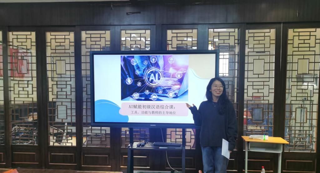 崔言燕老师聚焦初级汉语综合课,从词汇、语法、课文讲解等关键环节,阐述了DeepSeek、豆包等AI工具在增强教学直观性、实现精准语言输入中的实践应用,并强调教师应在资源筛选、内容调适等方面发挥主导作用,实现技术与教学的深度融合。