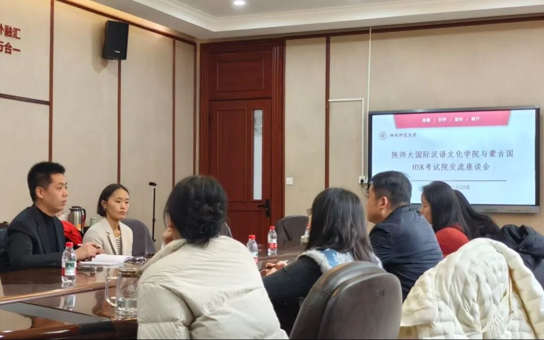 2026年1月23日,我院与蒙古国HSK考试院交流座谈会在国际汉语文化学院会议室举行。此次座谈会旨在搭建跨境交流平台,分享HSK考试组织管理及教学经验,深化考教融合实践,为双方后续长期合作奠定基础。
