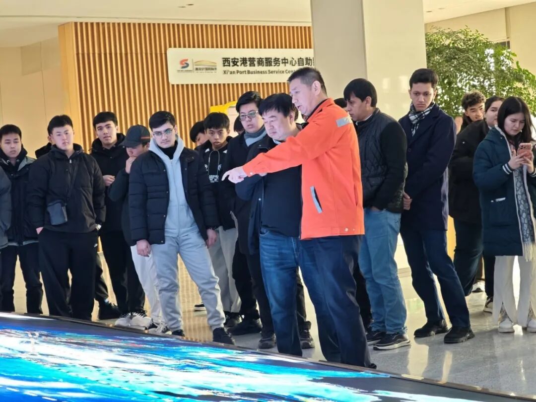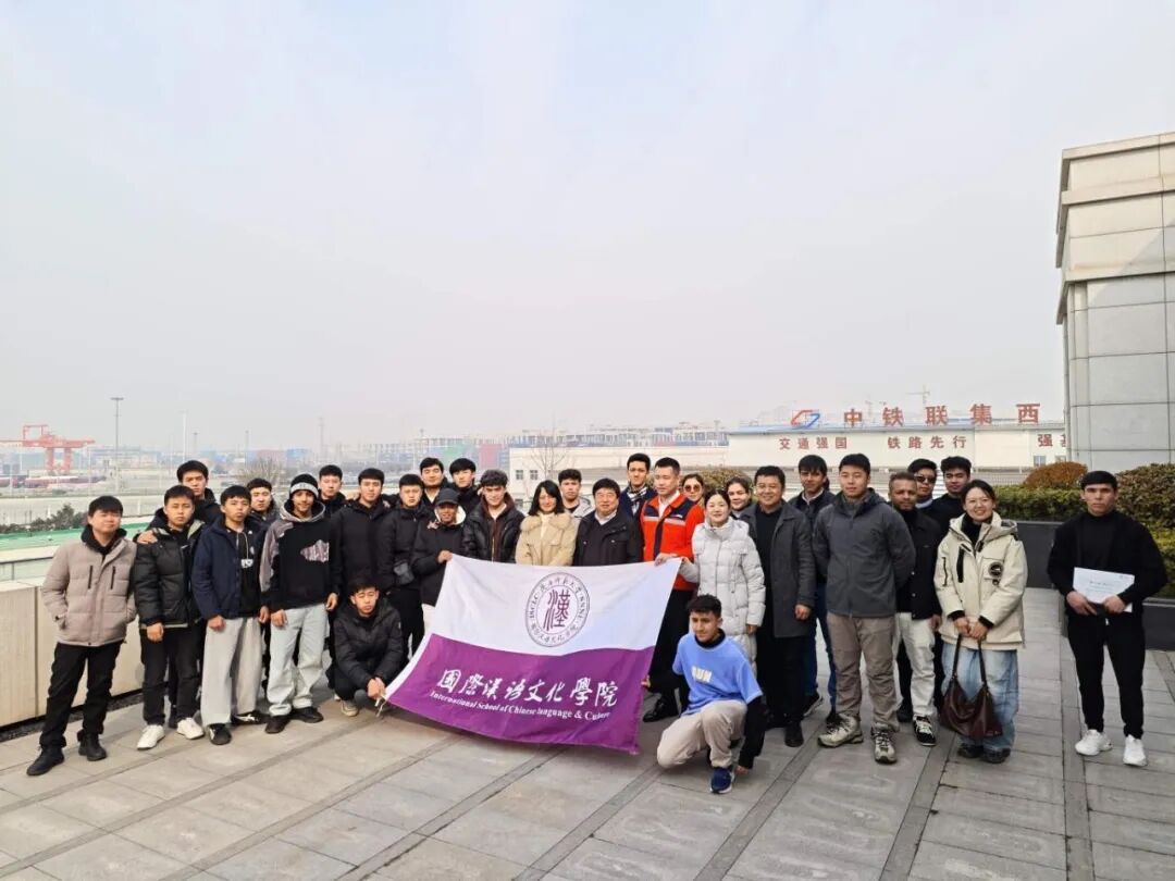 为深化产教融合,拓宽学生职业视野,2026年1月23日,陕西师范大学国际汉语文化学院院长石洛祥、党总支书记李小玲、党总支副书记王钰、副院长贾泽林、团委书记翁思洁、留学生辅导员张欣元、留管干部刘小熊及20余名留学生前往西安中欧班列开展访企拓岗活动,先后走进中铁集装箱运输有限责任公司与港务区,沉浸式感受国际物流发展活力。