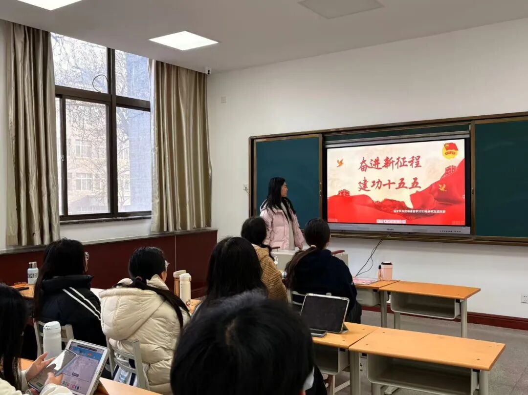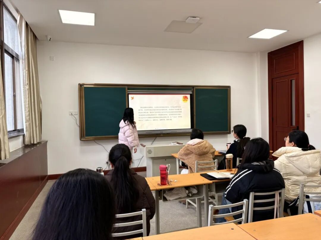 活动围绕两会之声、时代之需、专业之责、青年之行四个模块展开。团支书王佳佳带领大家学习了“十五五”开局、高质量发展、教育强国建设等核心内容,解读了国际传播从“走出去”到“走进去”的新要求,阐释了中文作为文明互鉴桥梁所承载的专业使命,并分享了专业学习、数智赋能、实践服务相结合的成长路径。同学们结合研一阶段的学习体会与专业发展方向,积极交流,畅谈自身在新时代背景下的使命担当。大家一致认为,作为国际中文教育专业的研究生,要自觉将个人成长融入国家发展大局,以专业所学服务中华文化国际传播。